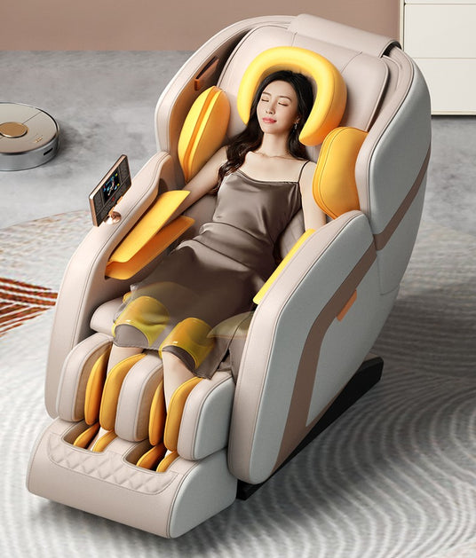 Elevate your relaxation experience with the cutting-edge Intelligent Massage Chair. This masterpiece offers a symphony of features tailored to rejuvenate every inch of your body. Dive into the soothing embrace of a full body airbag massage, or let the unique Jade massage roller melt away tension. With capabilities like the zero-gravity recline for optimal relaxation, heating therapy for deep comfort, and a smart AI chip that adjusts to your body's needs, every session feels personalized. Enjoy added luxuries like serene music via WIFI Bluetooth, an extendable leg rest to cater to all users, and the convenience of an intuitive LCD touchscreen. Pre-assembled for your ease, it's not just a massage chair—it's your personal wellness sanctuary.