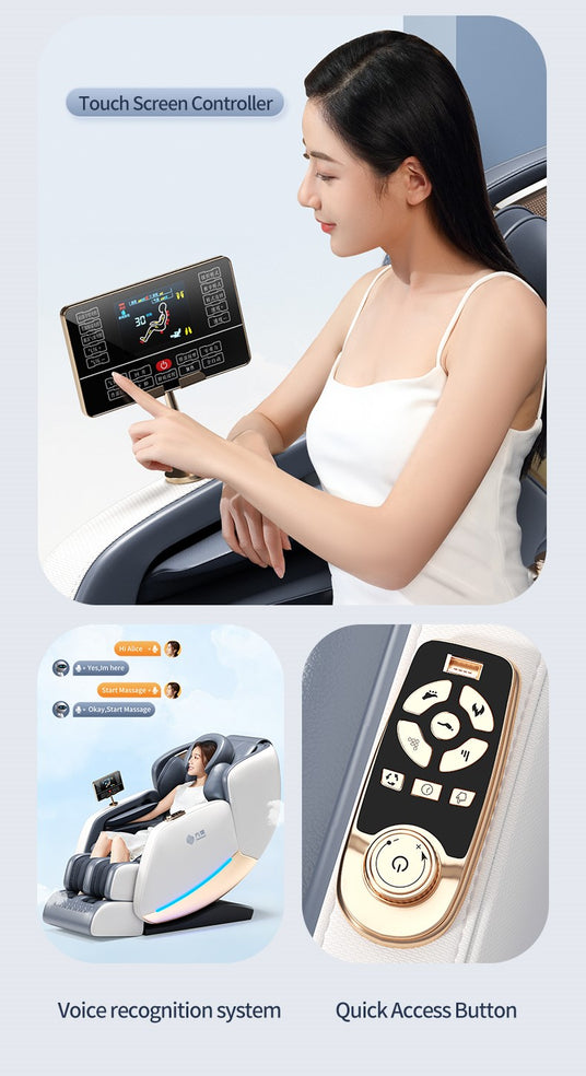 Step into the future of relaxation with the A60 Massage Chair's state-of-the-art Touch Screen Controller. Designed for ultimate convenience and user-friendly interaction, this sleek interface allows you to effortlessly customize and navigate through the chair's extensive range of massage programs and settings. With crisp visuals and responsive feedback, the touch screen ensures you have full control over your relaxation experience, tailoring every session to your preferences. Whether you're diving deep into a specific massage mode or adjusting intensity levels, the A60's Touch Screen Controller delivers a seamless blend of technology and luxury, ensuring a relaxation experience that is both sophisticated and intuitive. Dive into relaxation, one touch at a time.