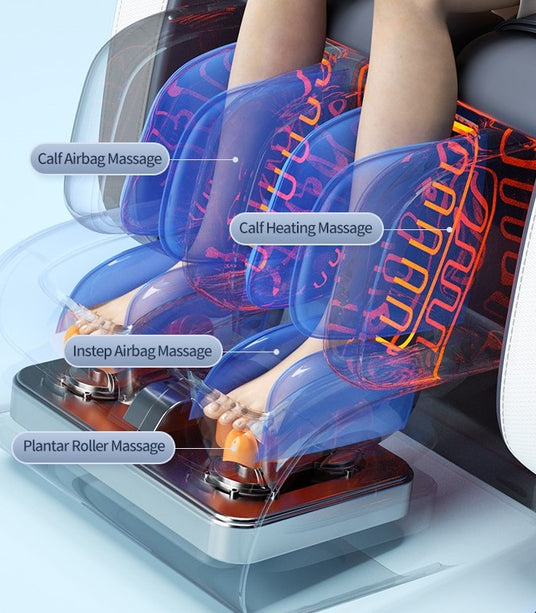 Immerse yourself in holistic comfort with the A60 Massage Chair. From head to toe, this advanced chair offers a symphony of relief. The gentle embrace of the head and shoulder airbags alleviate tension, setting a serene stage for relaxation. As you sink deeper, the arm, hip, and calf airbags rhythmically press and release, mimicking the expert touch of a professional masseuse. To cap off the experience, indulge your feet with a reflexology-inspired massage. Every feature of the A60 is tailored to deliver an unparalleled relaxation experience, ensuring every inch of your body feels invigorated and rejuvenated. Dive into a world of luxury and tranquillity with the A60.